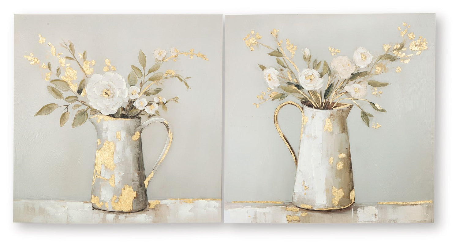 A perfect pair. This wall art set inspires in casual spaces thanks to its unpretentious character. Depicted in beautifully muted hues, the images of florals in vintage-inspired pitchers have a delicate, charming vibe. Such a welcoming addition to your decor.
