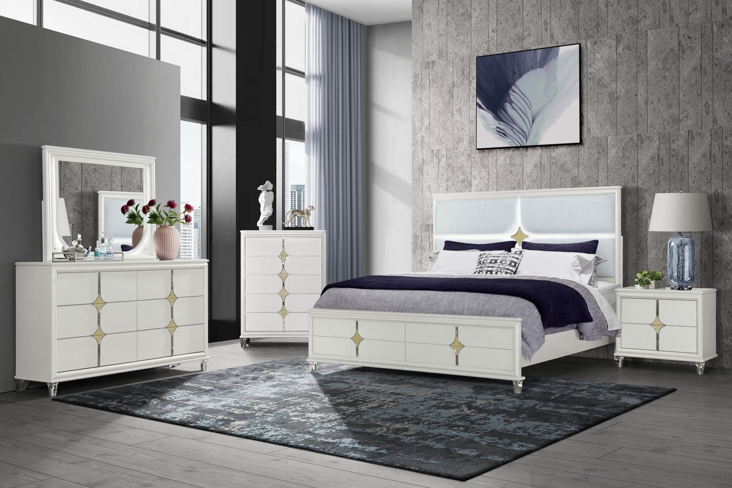 The Orion Mirror adds a touch of elegance to any room with its LED accent lighting. This mirror complements the collection with its modern design and chrome accents, providing both functionality and a stylish focal point for your bedroom.