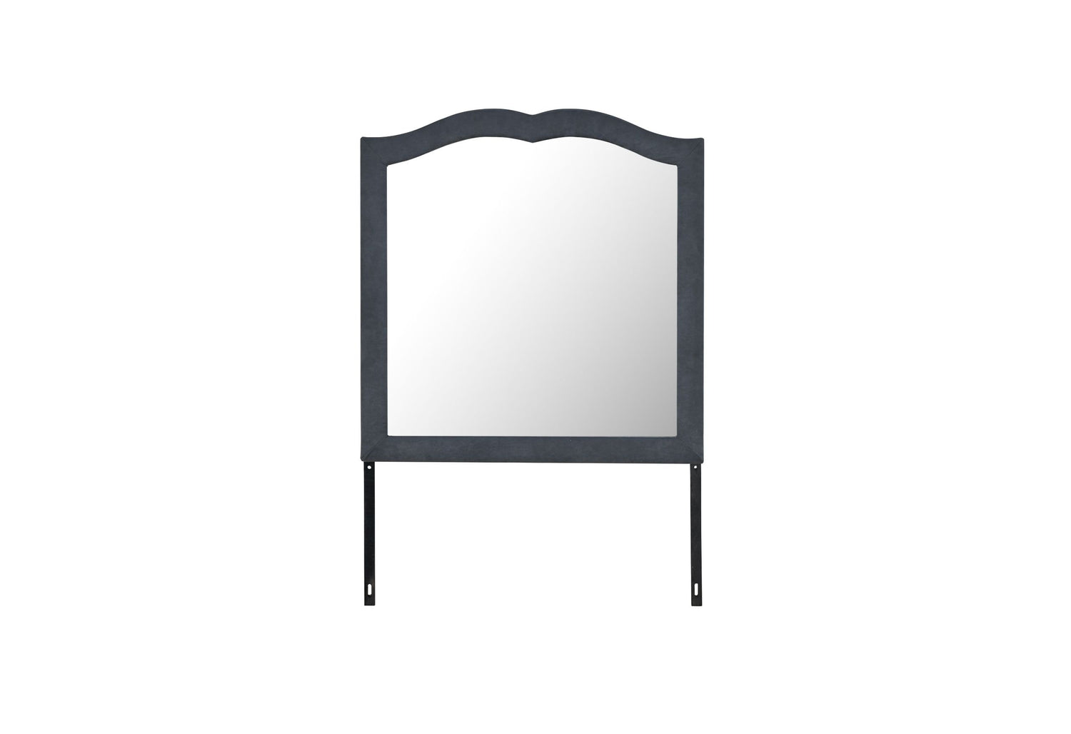 Reflect beauty and grace with the Vanna Mirror. This essential piece complements the upholstered look of the collection, framed in the same two-tone grey fabric and subtle crystal details. It's the perfect accessory to complete the Vanna Bedroom set, adding light and depth to your space.