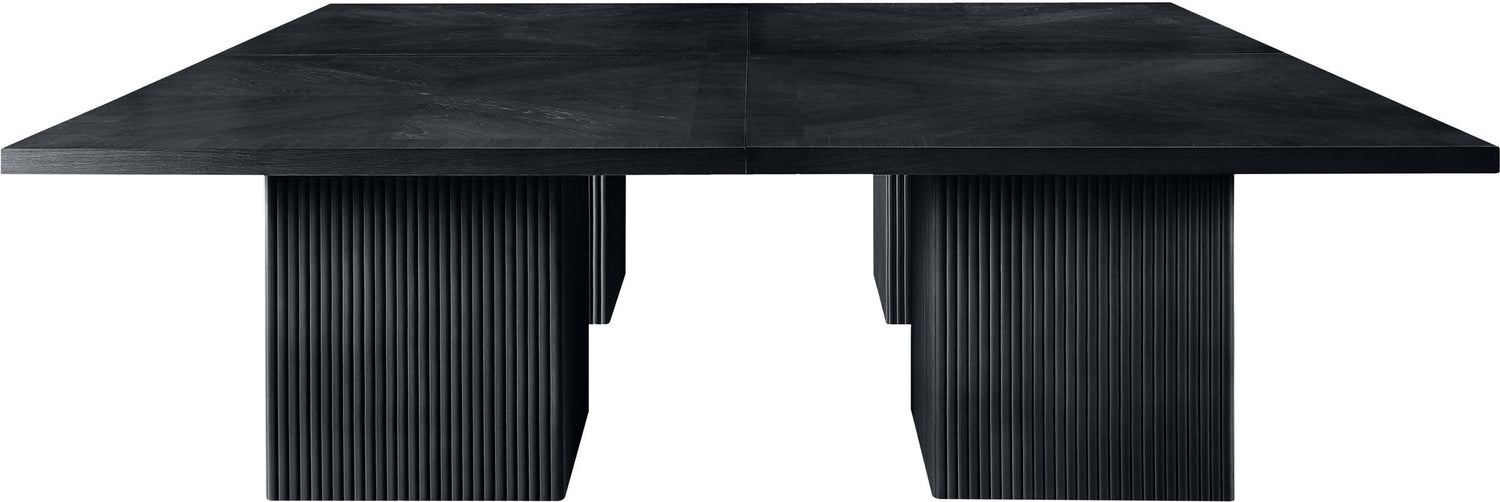 Even the smallest, most intimate dinner feels like an event when you're seated at this Belinda black modular dining table. Crafted with a solid wood base and a black finish oak wood veneer MDF top, its square top with fluted base exudes contemporary charm. The table top's thickness and natural wood grain variations add unique character, ensuring each piece is one-of-a-kind. Modular to create infinite configurations, it blends functionality with style for memorable dining experiences in any space.