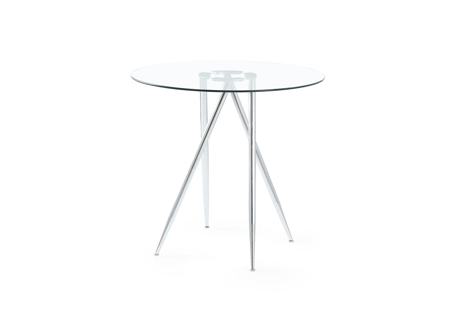 This simple and stylish bar table boasts lean chrome metal legs with a round tempered glass top designed to cater to all your dining needs.