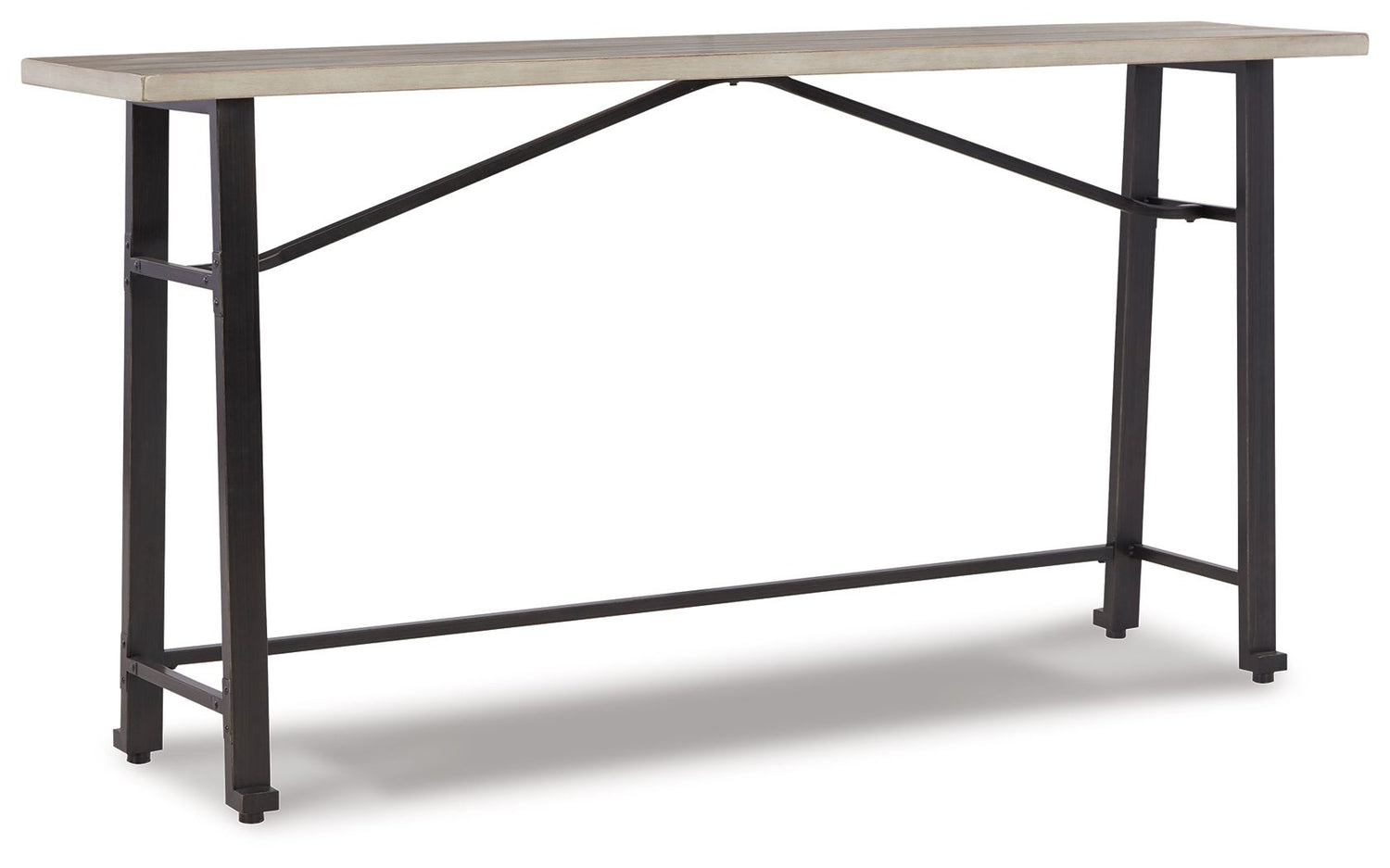 Bring that trendy bar atmosphere home with this long counter-height table. Featuring an acacia veneer tabletop in a whitewashed finish and a dark metal frame for farmhouse fresh appeal, it works well against an open wall or floated behind a sofa to make the most of your living space. Customize your comfort with adjustable height swivel stools (sold separately).