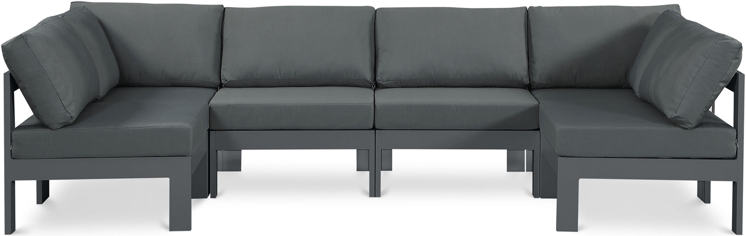 Nizuc - Outdoor Patio 6 Piece Modular U-Shaped Sectional With Gray Frame - Gray