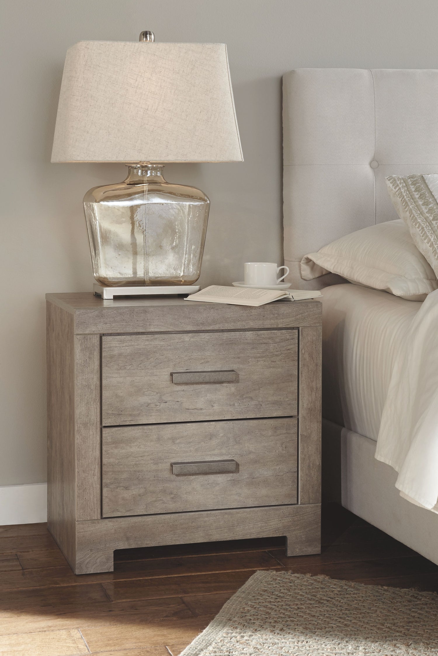 A sophisticated modern chunky look with large satin nickel colored hardware. Warm gray vintage finish with subtle pearl effect over replicated cherry grain. Mouldings across headboard give a thick planked look. Side roller glides for smooth operating drawers. Drawer interiors finished with a replicated linen design. Slim USB charger located on the back of the night stand tops. Queen (57) panel headboard can attach to a bolt-on metal bed B100-31. Queen (57) panel headboard is capable of attaching a full sized metal bolt on bed frame. Headboard legs have four height options for optimal relationship to bedding height. Safety is a top priority, clothing storage units are designed to meet the most current standard for stability, ASTM F 2057 (ASTM International). Drawers extend out to accommodate maximum access to drawer interior while maintaining safety.