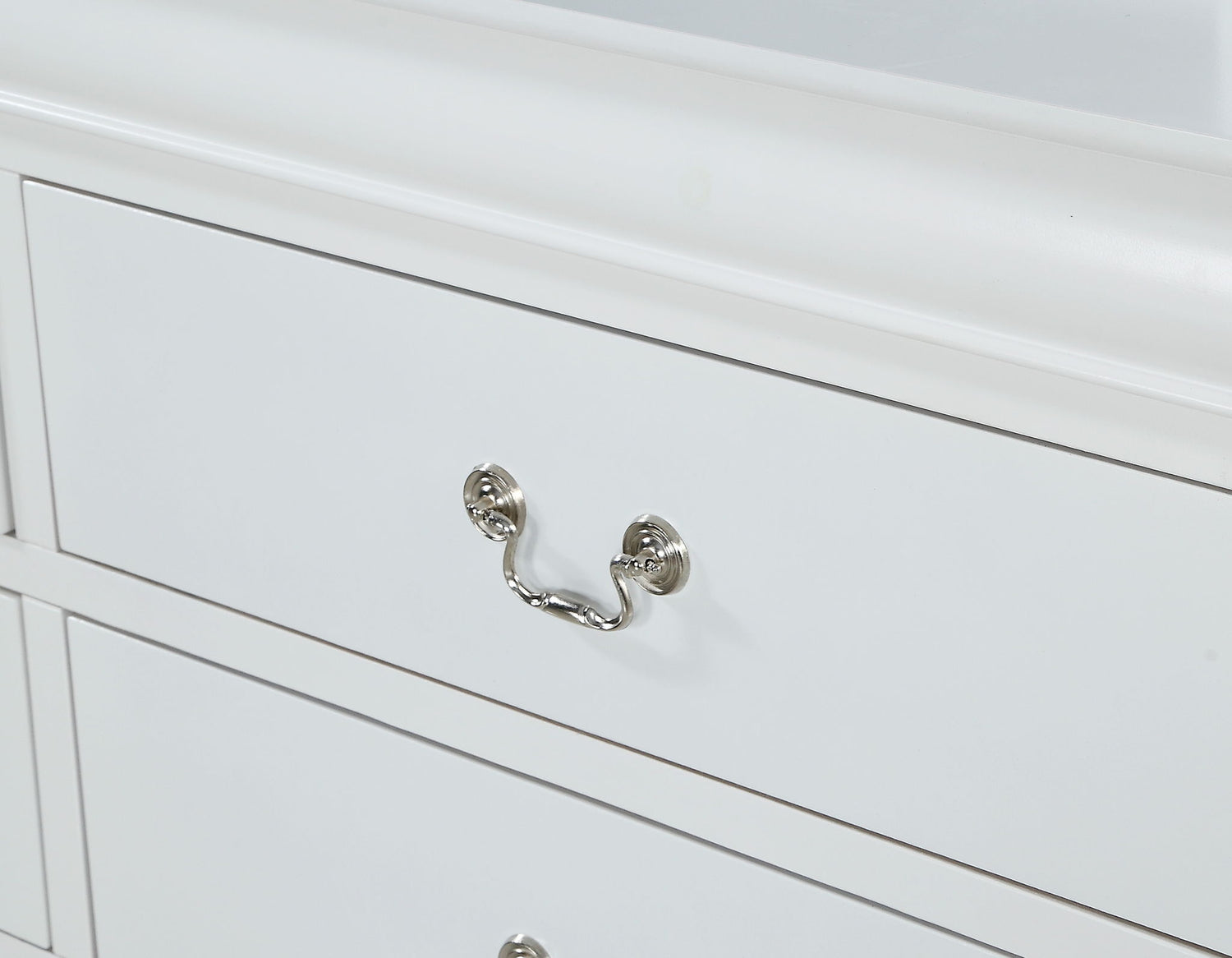 Elevate your sanctuary with this timeless bedroom collection that exudes classic charm with a modern twist. Each piece is bathed in a crisp finish that brings a bright and airy feel to any space. The elegant bed anchors the room with its gracefully curved headboard footboard, providing a stylish backdrop for plush bedding. Complementary case goods offer ample storage, with smooth, silver-toned handles adding a subtle touch of refinement.
