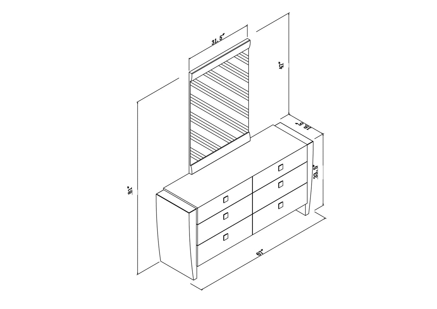 This dresser is a lovely addition to a modern bedroom that is full of stylish and practical features. The high gloss finish creates a geometric pattern to make this a gorgeous focal point. With ample space in the drawers, storing and organizing belongings has never been easier. Thanks to the use of only the best materials, this dresser is sustainable for the long haul. Designed in Italy to ensure quality, the dresser is part of the luxurious Paris collection that all come together to form a cohesive look. It comes in a two-tone version, with six drawers.