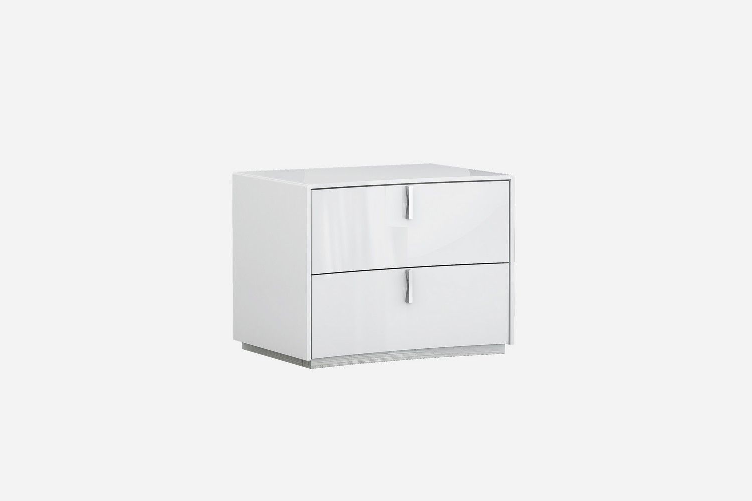 Update your modern bedroom with this nightstand in contemporary and minimal design, the square silhouette fits in well with the rest of the modern furnishings. It features two drawers that open smoothly and has ample room to keep belongings organized and out-of-sight. The spacious top is ideal for essential belongings that you want within reach through the night. Thanks to the contrasting finishes, it creates a vibrant juxtaposition for an eye-catching touch. Quality construction ensures durability for years to come. Designed in Italy to ensure quality. The structure comes in white high gloss finish.