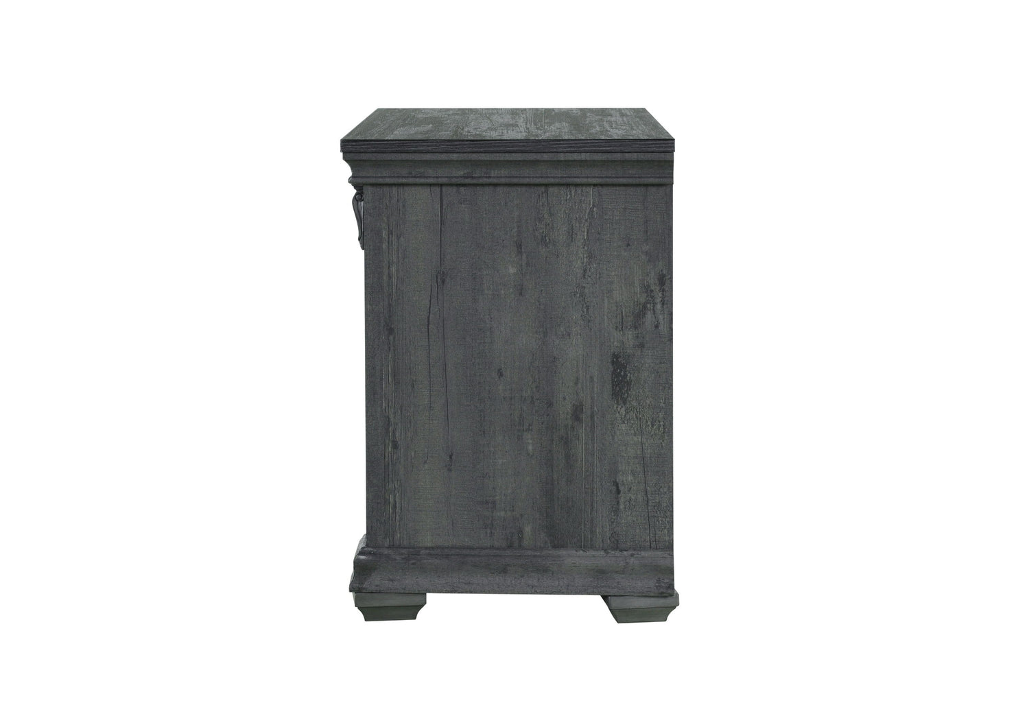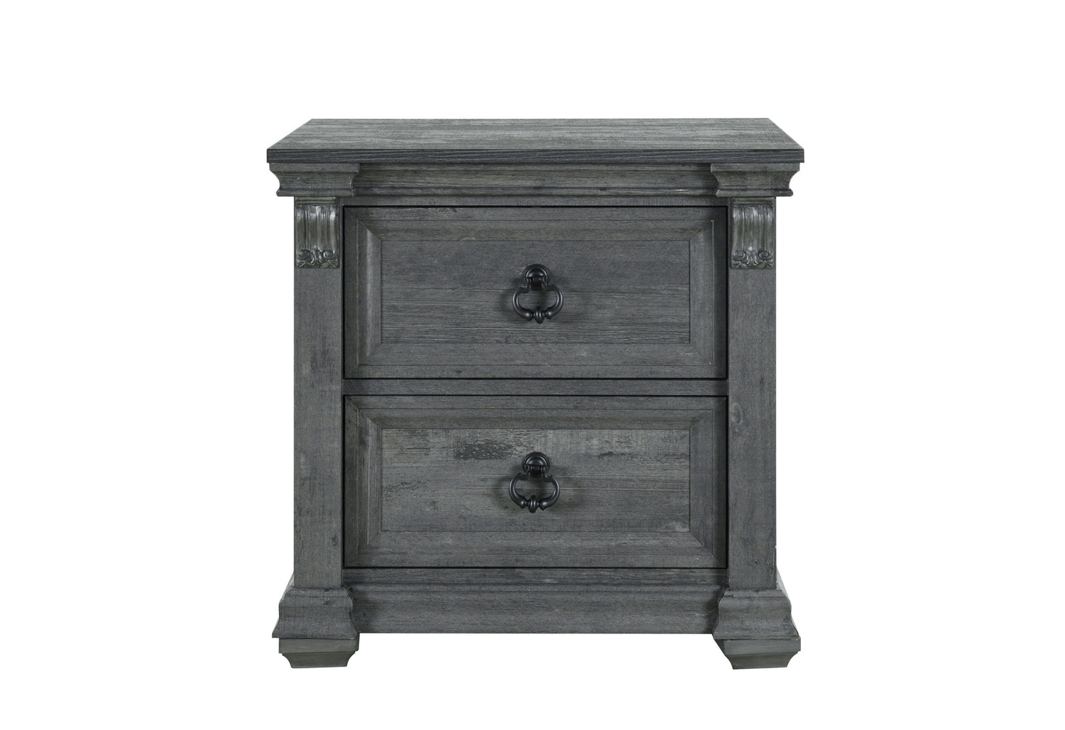 Complete your bedroom ensemble with the Rowan/Tatum Nightstand. This charming piece features the same rustic wood finish, rustic drawer hardware, and intricate details as the rest of the collection, providing a perfect bedside companion for your essentials.