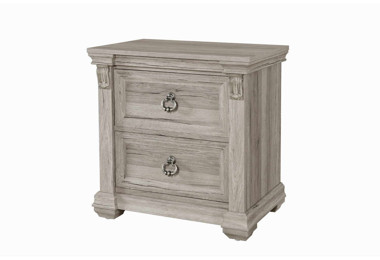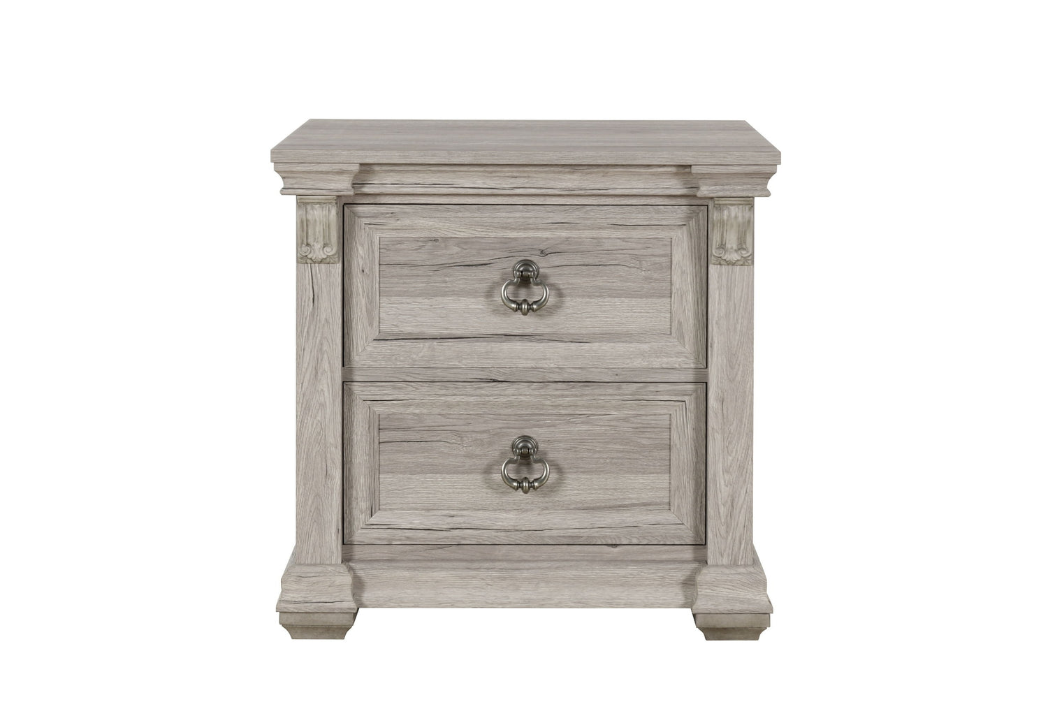 Complete your bedroom ensemble with the Rowan/Tatum Nightstand. This charming piece features the same rustic wood finish, rustic drawer hardware, and intricate details as the rest of the collection, providing a perfect bedside companion for your essentials.