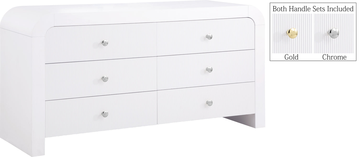 Make organizing a stylish affair when you bring home this Artisto dresser. This beautiful dresser features an elegantly eye-catching design with its rich wood veneer finish and its textured drawer front designs. Six drawers give you oodles of room for storing items out of sight and out of mind, and the roomy drawers make sure that organizational power is at your fingertips.