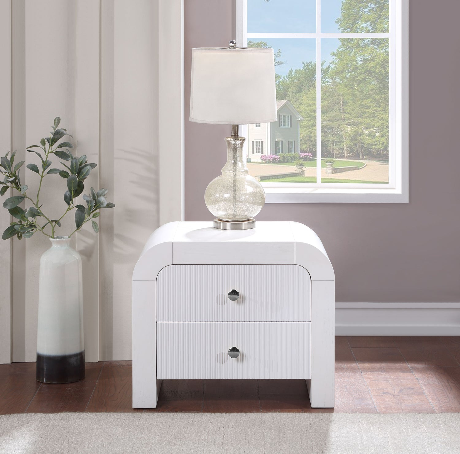 Make organizing a stylish affair when you bring home this Artisto nightstand. This beautiful nightstand features an elegantly eye-catching design with its rich wood veneer finish and its textured drawer front designs. Two drawers give you oodles of room for storing items out of sight and out of mind, and the roomy drawers make sure that organizational power is at your fingertips.