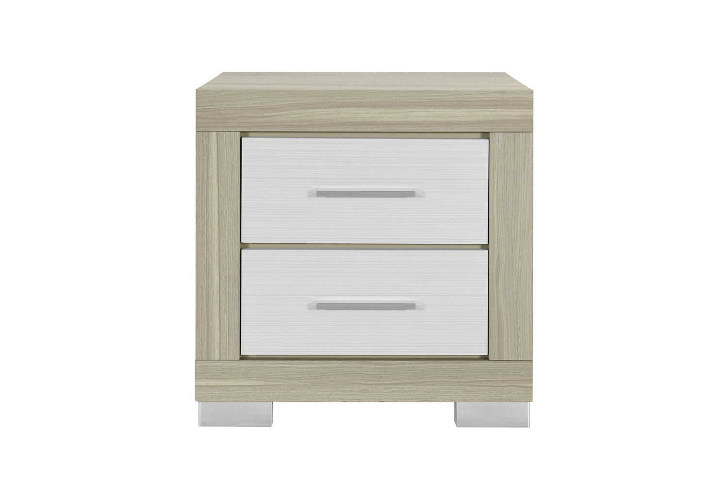 The Emma Night Stand is a perfect complement to both the Emma and Madison bedroom collections offering a sleek and stylish storage solution. Finished in the same two-tone natural wood and white, this nightstand features a modern design with a spacious drawer for storing your bedside essentials. The clean lines and minimalistic look make it a versatile piece that seamlessly fits with any contemporary bedroom decor.