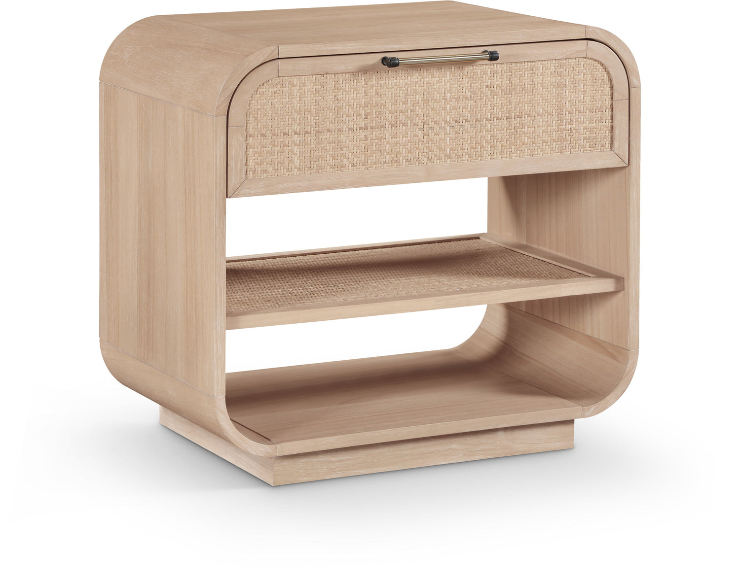 With its rich natural finish and breezy cane accents, the Windsor natural solid wood nightstand adds an instant sense of calm to any space. Solid wood construction brings lasting quality, while the rounded edges nod to iconic mid-century design. Whether storing essentials or simply making a statement, this piece does it all with ease.