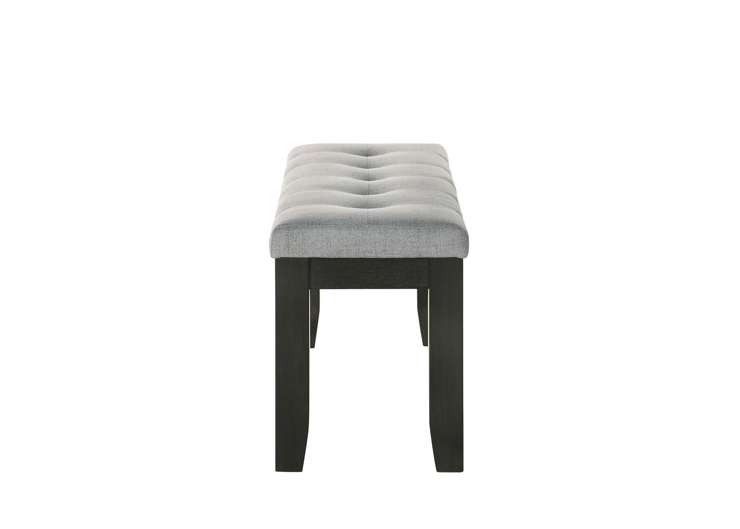 This dining group effortlessly combines farmhouse warmth with modern sophistication, creating a captivating focal point for any dining space. The table features a rich, two-tone design with a beautifully finished wood top and contrasting dark legs, delivering a striking visual appeal that suits various decor styles. The ladder-back chairs and tufted bench offer both style and comfort, with plush upholstery in a versatile neutral tone that invites guests to linger. With its blend of rustic charm and contemporary flair, this set is perfect for both intimate family meals and lively gatherings, making your dining area a stylish and welcoming retreat.