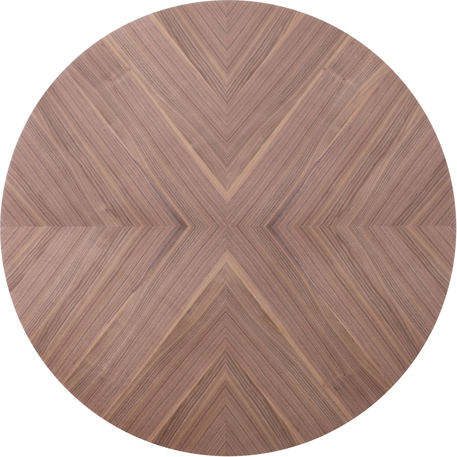 Blend traditional with modern when you bring this Eleanor dining table into your space. This table catches the eye with its woodgrain natural walnut veneer top that rests sturdily on its brushed gold base. Offering legroom aplenty for your guests, this table provides a lovely contrast that is well at home in both modern and classic decor settings. Pair your favorite chairs for a look that is hard to ignore.