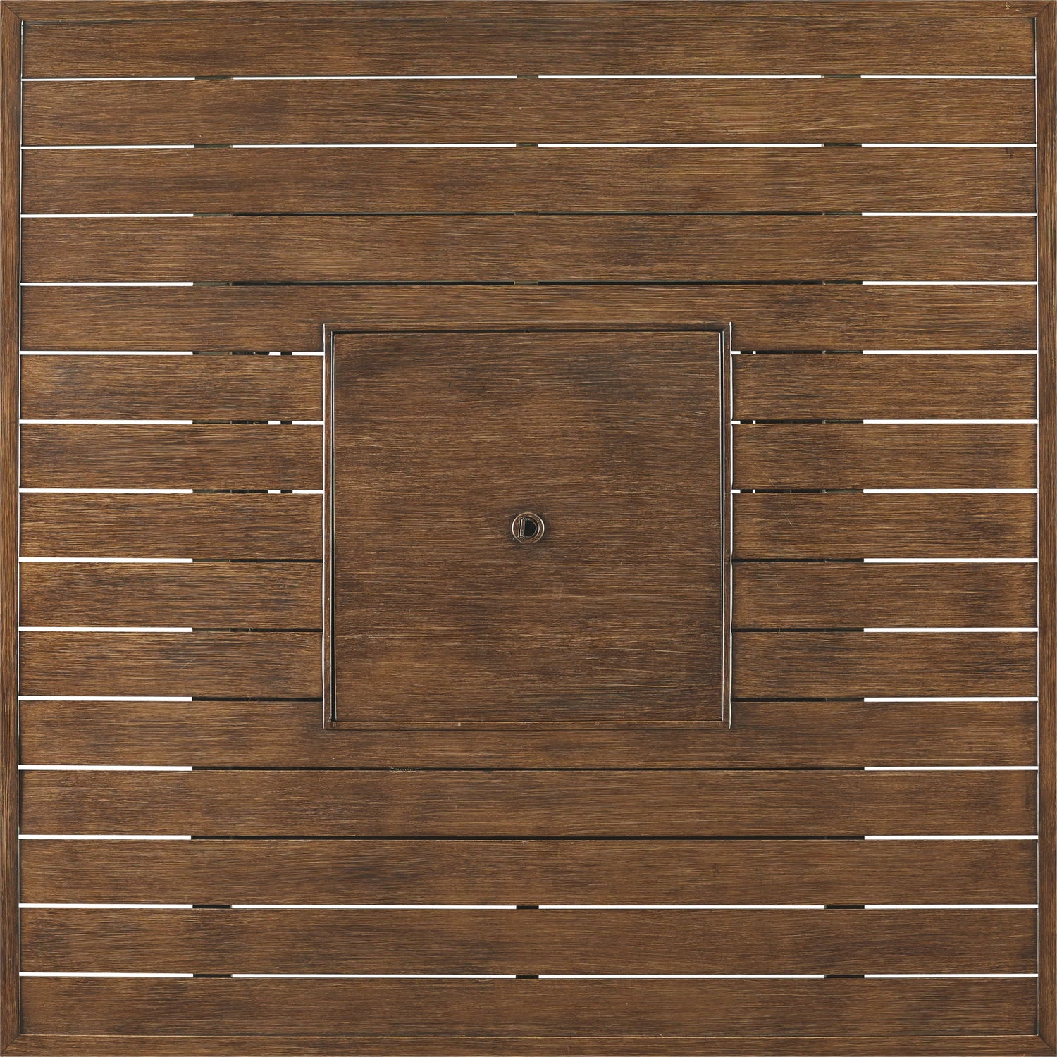 Collection has hand woven resin wicker with rust free aluminum frames with a brown wood-look finish. All cushions and throw pillows are made with Nuvella high performance fabric. Choose from dining, bar table and seating sets. For dining, choose from stationary dining chair or swivel rocker dining chair. 56" square bar table includes 55,000 BTU CSA approved stainless steel burner, enclosed storage area with shelves. Stools have fast dry foam seats below the woven resin wicker to provide comfort. No seat pads needed for barstools. To order a 9-piece bar table set, order P750-130(4) and P750- 665. Assembly required for all skus.