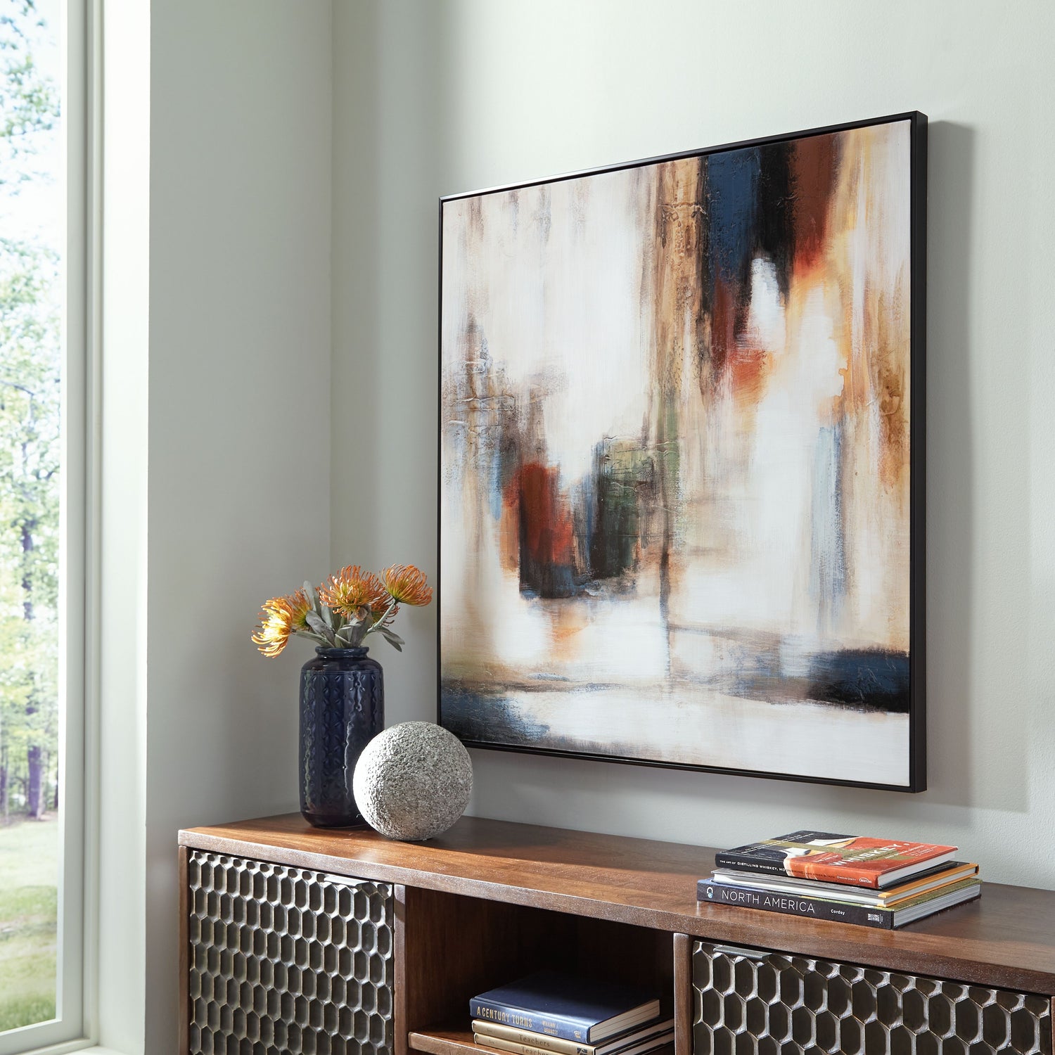 Your contemporary cool aesthetic isn’t complete without this wall art. Taking an abstract approach, it ties together different decorative elements with its varying tones in shades from spice to teal. Reflective of your refined taste, this simply sleek piece elevates your space with ease.