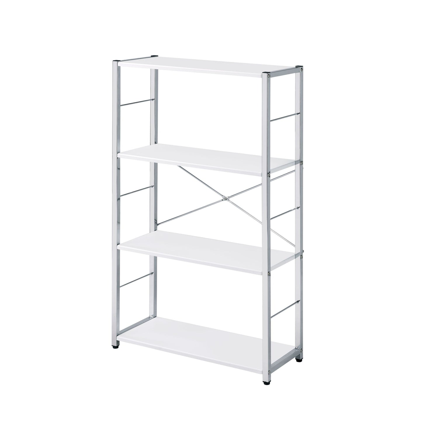 Rectangular BookshelfModern Concise Design Chrome Metal Frame X-Shape Cross Bar4 Tier Shelf Book Case