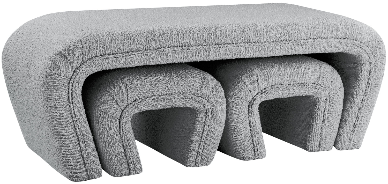 Save space and add style to your home with this Odelia boucle fabric bench from Meridian Furniture. Featuring rich, boucle fabric upholstery, this bench offers a soft and comfortable spot for guests to sit. Included are three nesting benches, so you always have extra sitting space which can easily be tucked away when not needed. This contemporary bench is perfect for any modern home and will liven up any living space.