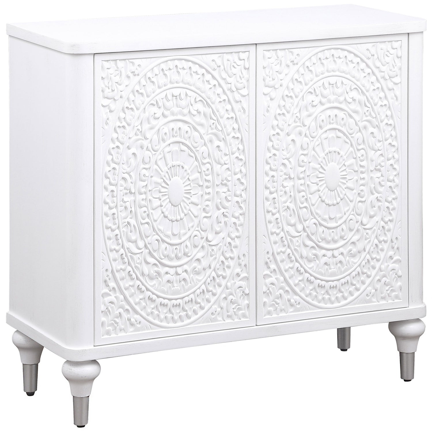 Cardella - 2 Door Mandala Accent Cabinet - Distressed White