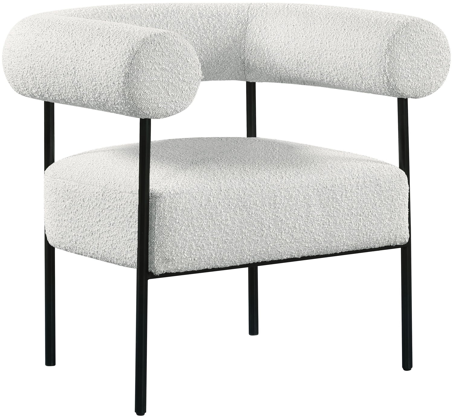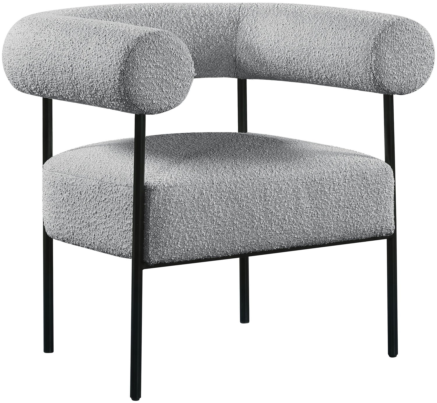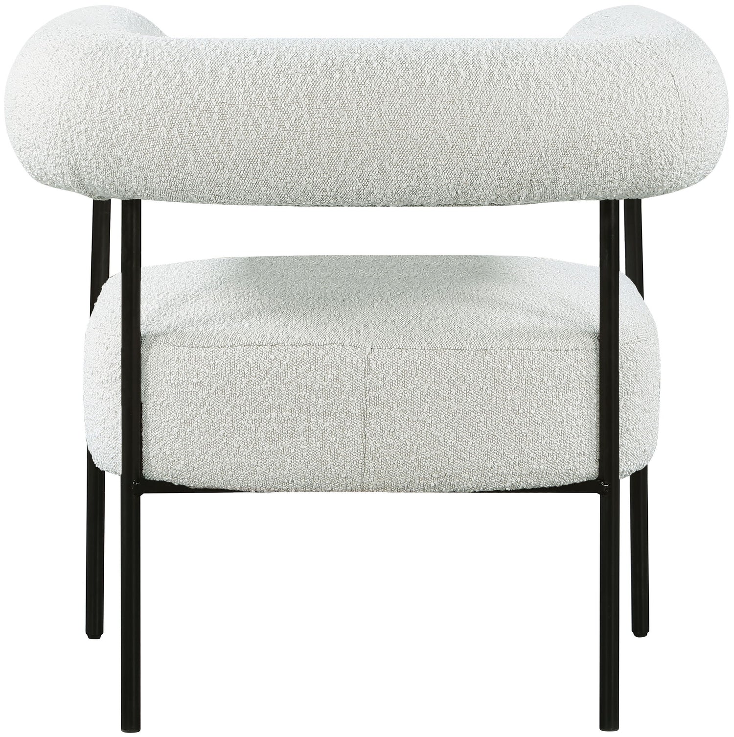 Modernize your home with this Blake accent chair. Featuring rich boucle fabric and a matte metal frame, its contemporary design is sure to catch the eye of all your house guests. Crafted from a mixture of iron and foam, this accent chair is sturdy enough to seat just about anyone. Its curved back provides a comfortable resting place for your spine, and its thick foam cushion gives you a plush place to sit.