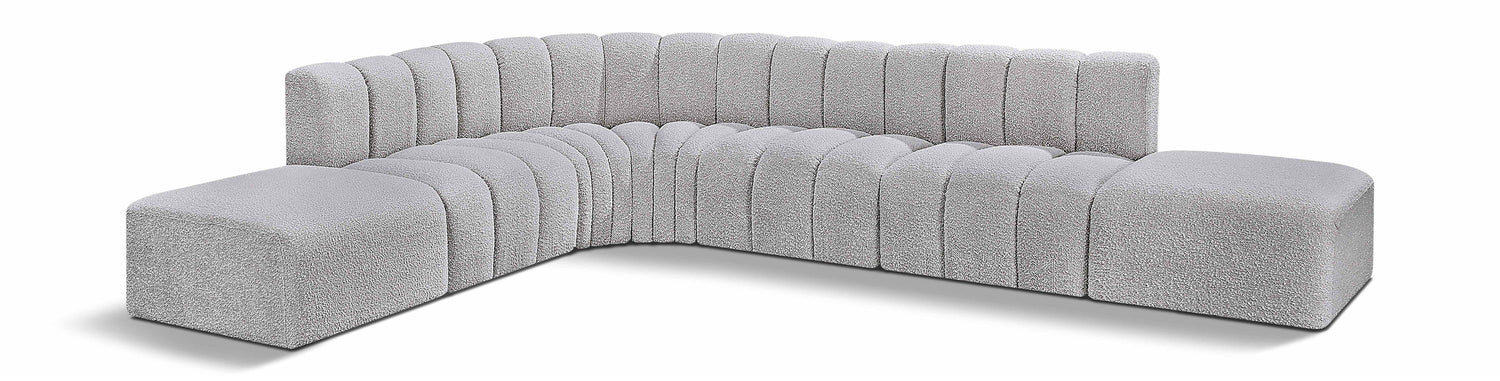 Arc - Boucle Fabric 7 Piece Corner Modular Sofa - Gray