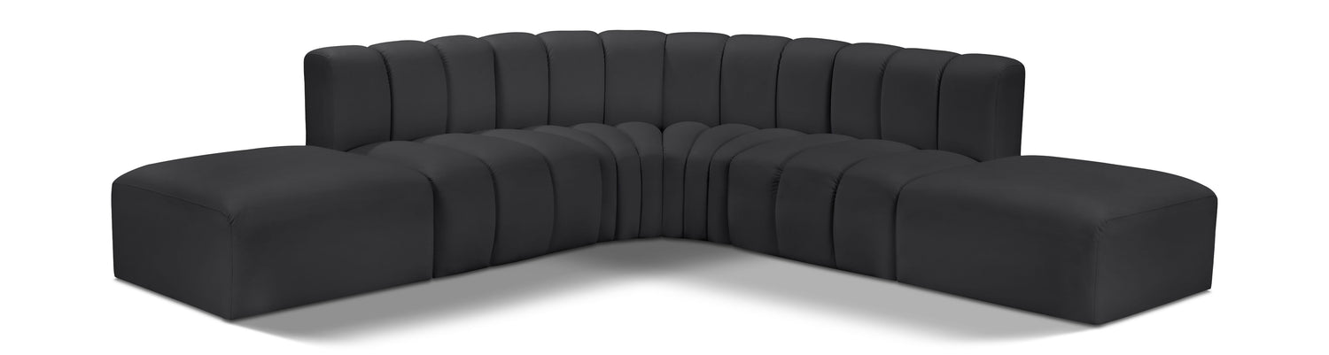 Arc - Faux Leather 6 Piece Corner Modular Sofa - Black