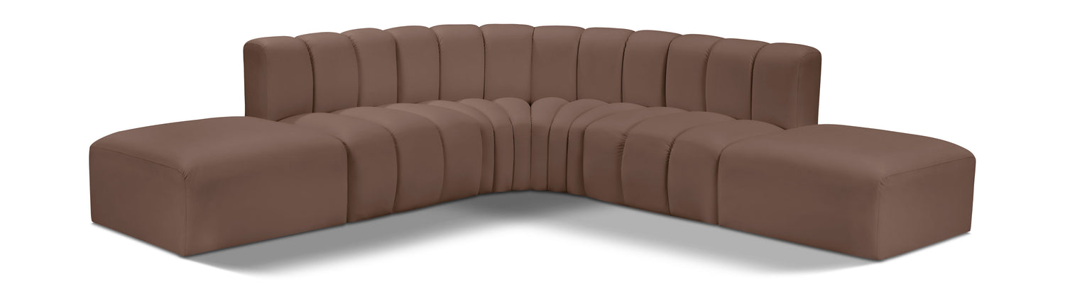 Arc - Faux Leather 6 Piece Corner Modular Sofa - Brown