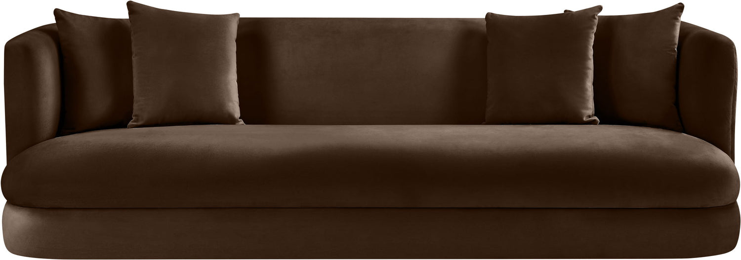 The Alder velvet upholstered sofa is an invitation to relax. Its rounded silhouette and soft velvet upholstery create a cozy and inviting space, perfect for stretching out and relaxing. Whether you're enjoying a quiet moment or hosting guests, this sofa is the perfect centerpiece for any living space.