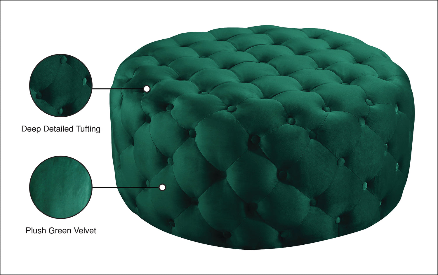 Rest weary legs at day's end atop the welcoming comfort of this Addison velvet ottoman. This Hollywood-inspired ottoman features deep button tufting from top to bottom for a luxe look and is covered in velvety upholstery for added glam. The vibrant color makes a bold statement in your space. This substantially sized ottoman also doubles as an extra seat and is padded thickly for supreme comfort.