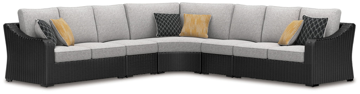 Beachcroft - 5-Piece Outdoor Sectional - Black / Light Gray