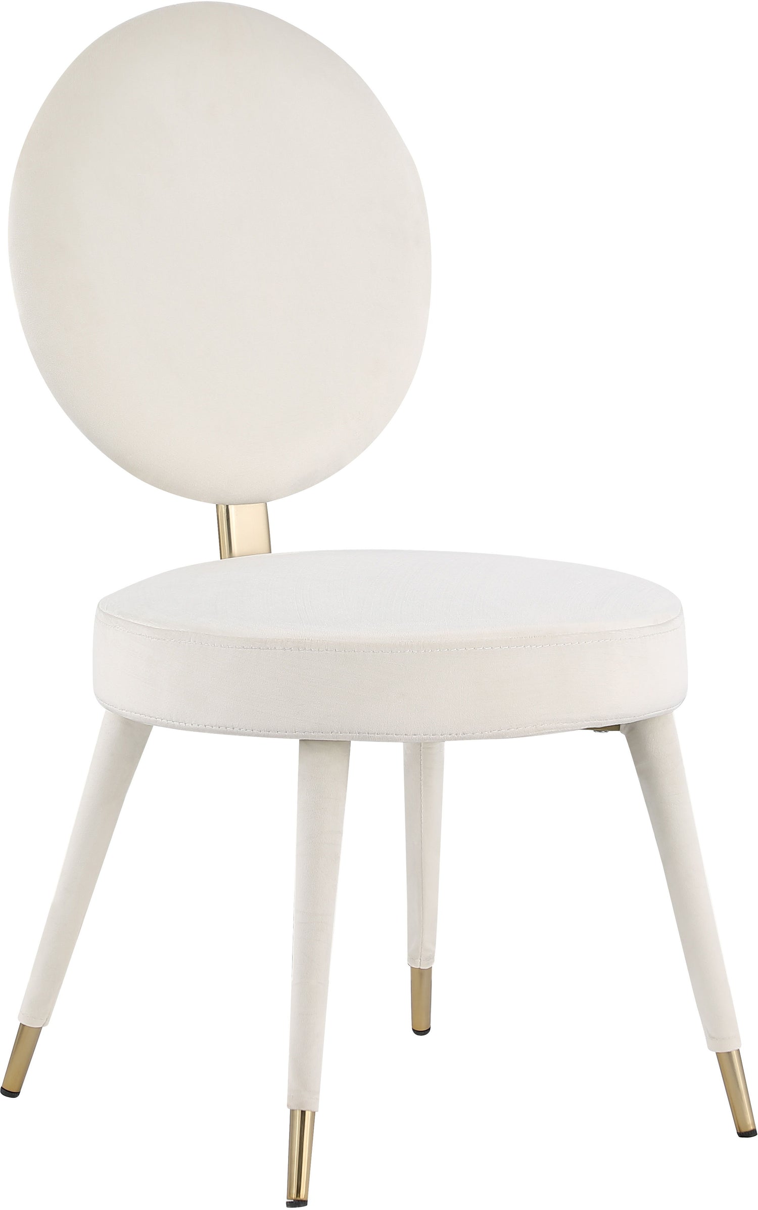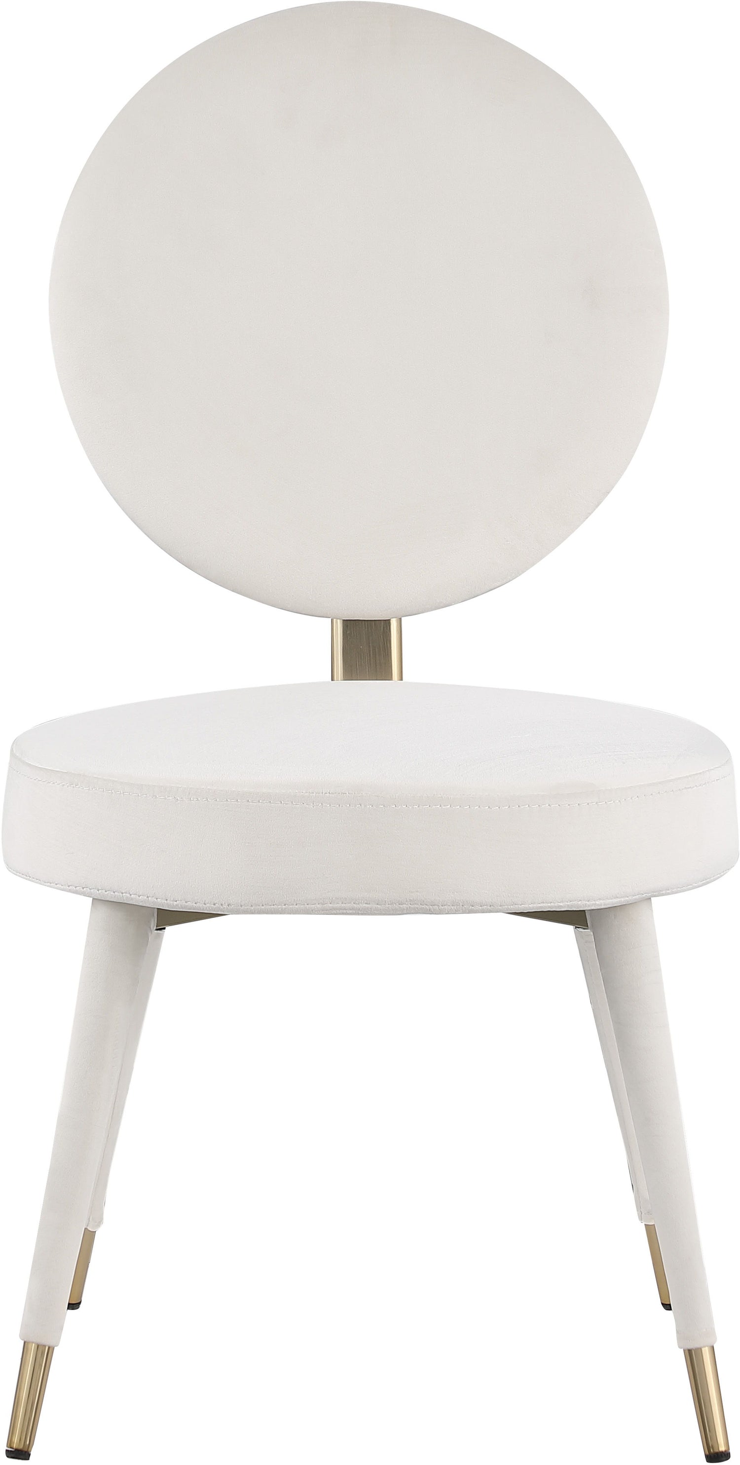 Give your dining area a chic touch with this Brandy velvet dining chair from Meridian Furniture. Featuring a rounded seat and rounded backrest, this chair brings an element of style to your dining table. Soft velvet upholstery makes this chair a luxury to sit on, providing softness and comfort while you eat breakfast, lunch, or dinner. Its brushed brass finish pops out from the the velvet upholstery, giving it a contemporary style that complements your home.