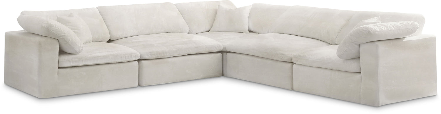 Bring home this Cozy 5-piece sectional for a fresh new look. Embrace casual elegance with this Cozy velvet cloud-like comfort modular fiber-filled seating option. Handsome from all angles, this piece features soft velvet upholstery to make it an easy fit in any room. This modular piece can be combined with other items in the Cozy collection to create a seating group of your dreams. The cushions on this piece are exceptionally comfortableand filled with fiber for luxury that you deserve as you rest and relax.