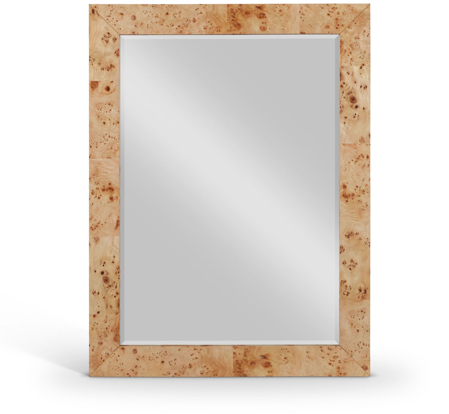 Modernize your living room or den with this Cresthill mirror. Elegantly crafted from wood and wood products, this pretty mirror has a natural burl wood finish for a look that's stunningly elegant. Designed to be an eye grabber, this mirror has an understated feel with clean lines and a naturally beautiful feel. Pair it with other items in the Cresthill collection for a finished look in your space, or use it on its own as a lovely standalone piece.