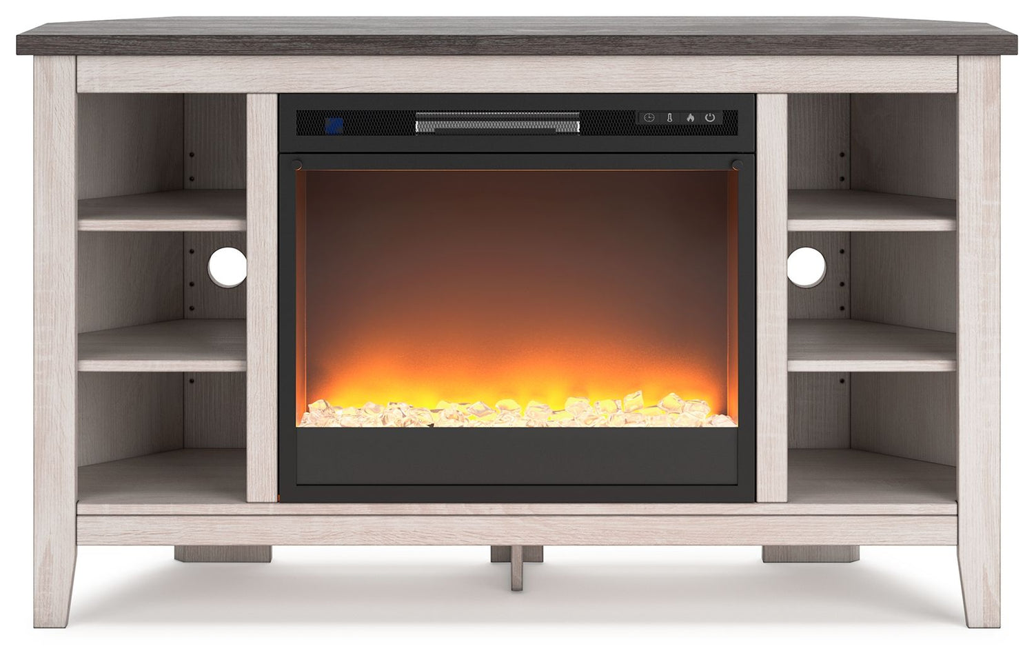 Dorrinson - Corner TV Stand With Fireplace Insert
