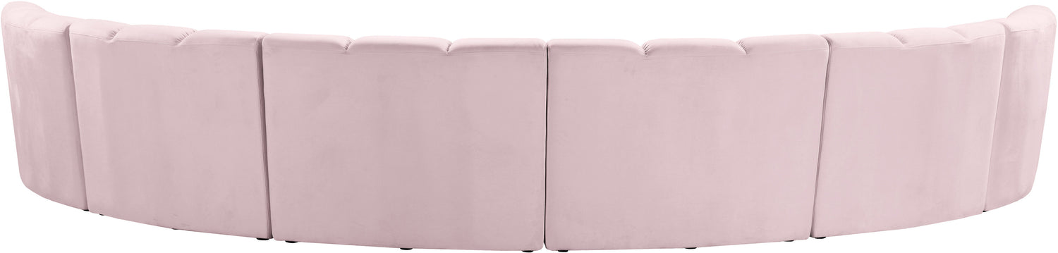 Create a seating group that works for every possible situation with this Infinity modular 6-piece sectional and other pieces in the Infinity collection. Upholstered in soft velvet material that feels great against the skin and offers long-wearing beauty, this piece fits with other Infinity items for an infinite number of combinations that get your seating requirements just right but that look just as nice when used on their own.