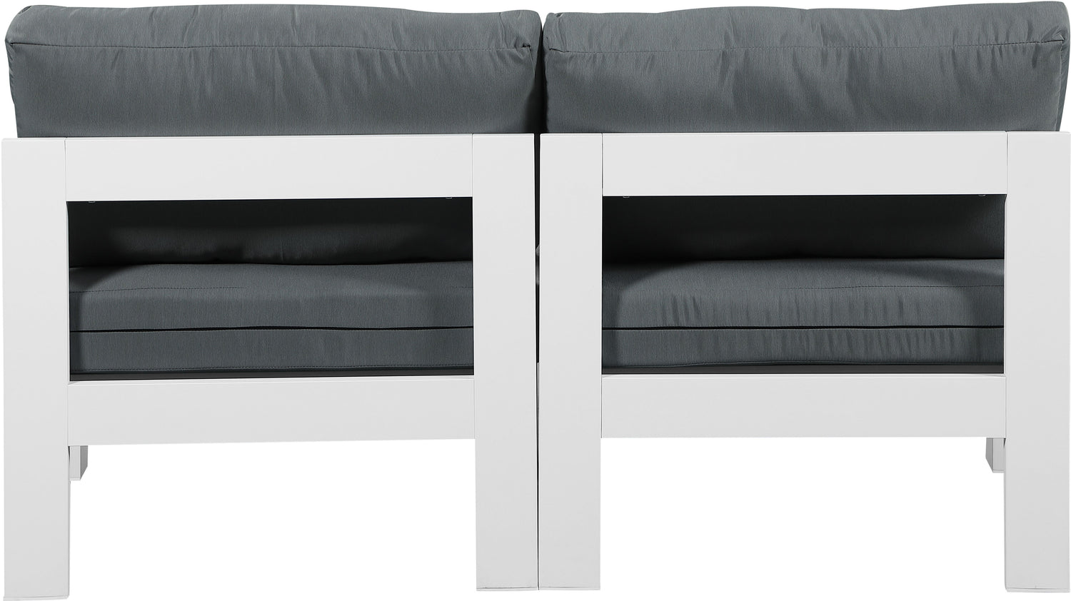 Nizuc - Outdoor Patio 2 Seat Armless Modular Sofa With White Frame - Gray