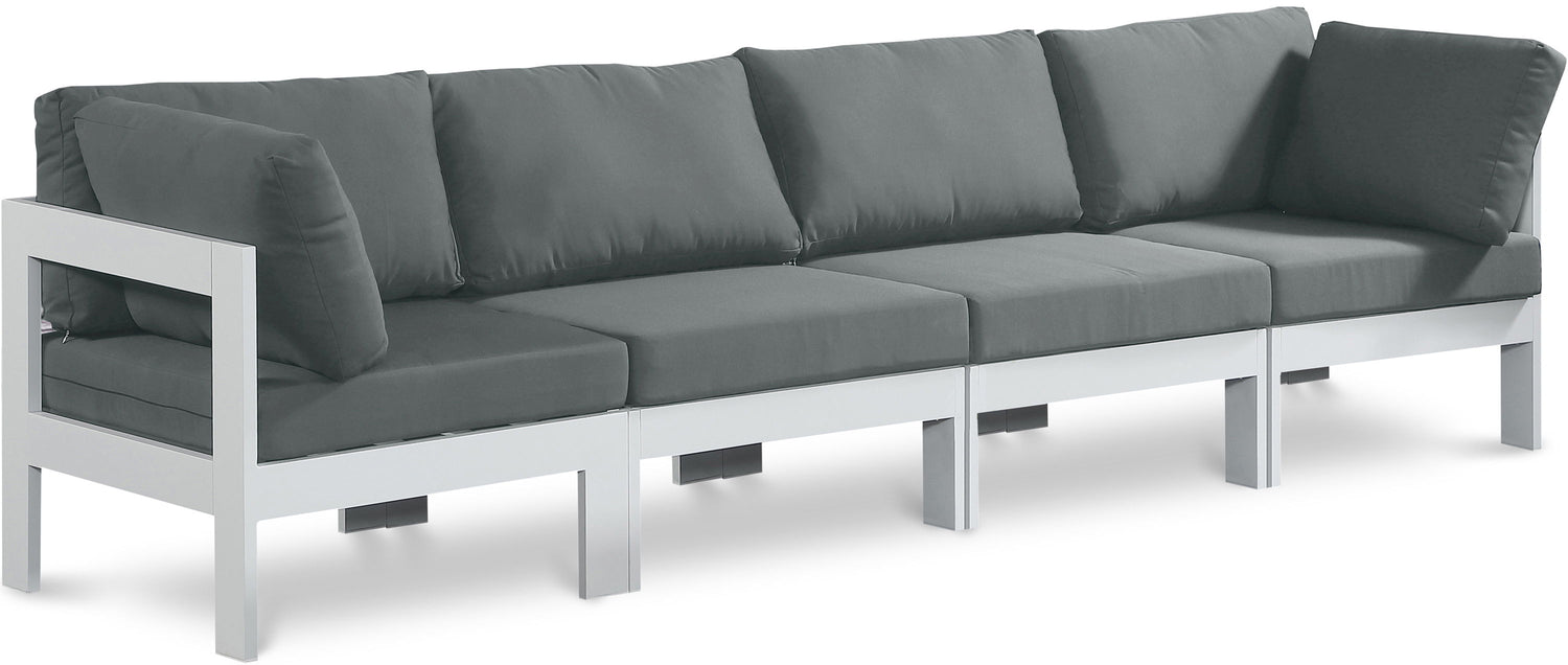 Nizuc - Outdoor Patio 4 Seat Modular Sofa With White Frame - Gray