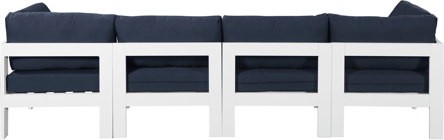 Nizuc - Outdoor Patio 4 Seat Modular Sofa With White Frame - Navy