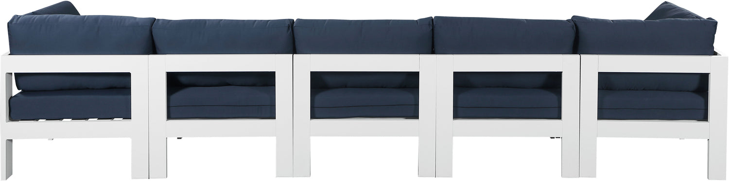 Nizuc - Outdoor Patio 5 Seat Modular Sofa With White Frame - Navy