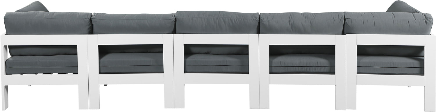 Nizuc - Outdoor Patio 5 Seat Modular Sofa With White Frame - Gray