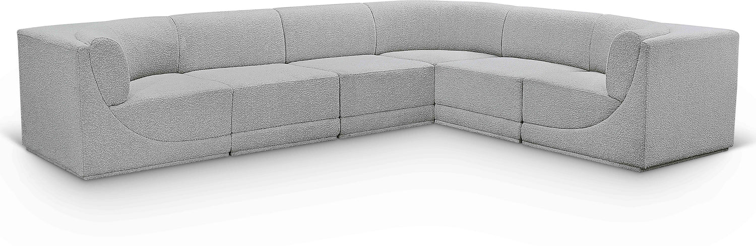 Meet the epitome of style and functionality with this Ollie boucle fabric living room sectional, part of the Ollie modular collection. A contemporary marvel, this sectional features chic and inviting rich boucle fabric upholstery, giving it a sumptuous texture that oozes elegance and luxury. Curved corners add to the visual look of the sectional while maximizing seating comfort while lounging, reading, or entertaining. Pair it with other items in the Ollie collection easily, thanks to an attachment latch underneath.